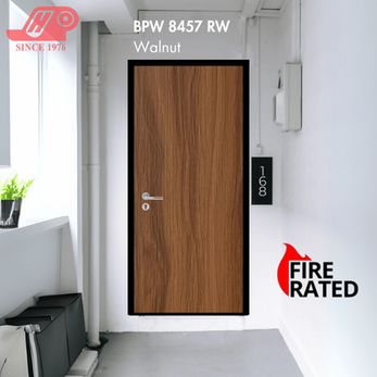 From 2005 to 2015, veneer fire rated doors were widely installed in HDB BTO flats, thanks to their sleek designs and wood-like finishes. Models like Recon Dark Walnut and Cherry were especially popular during that era.